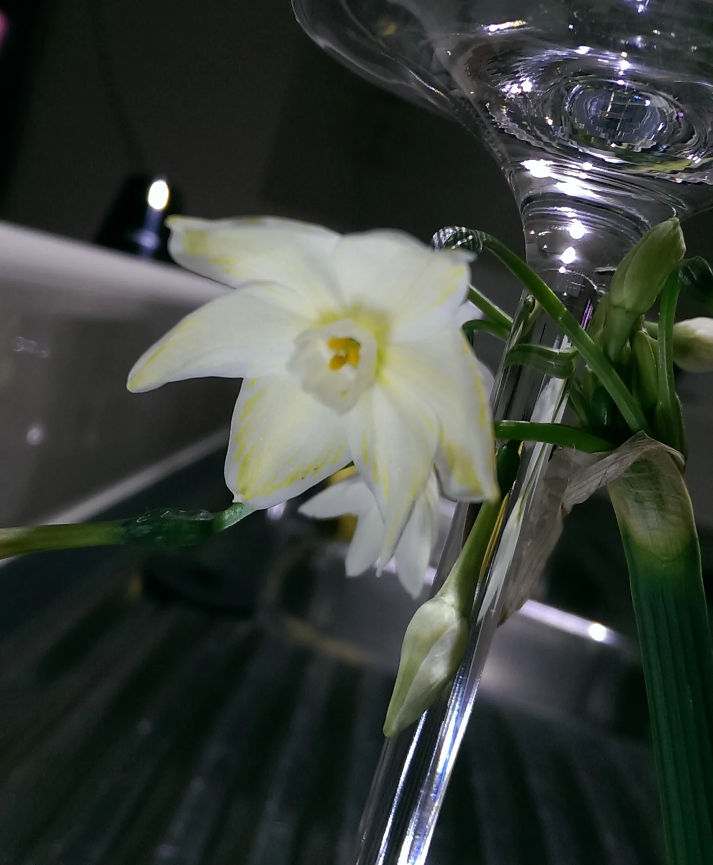 1) Start off with some white flowers, in this case I am using Daffodils. *Roses are the best to use.