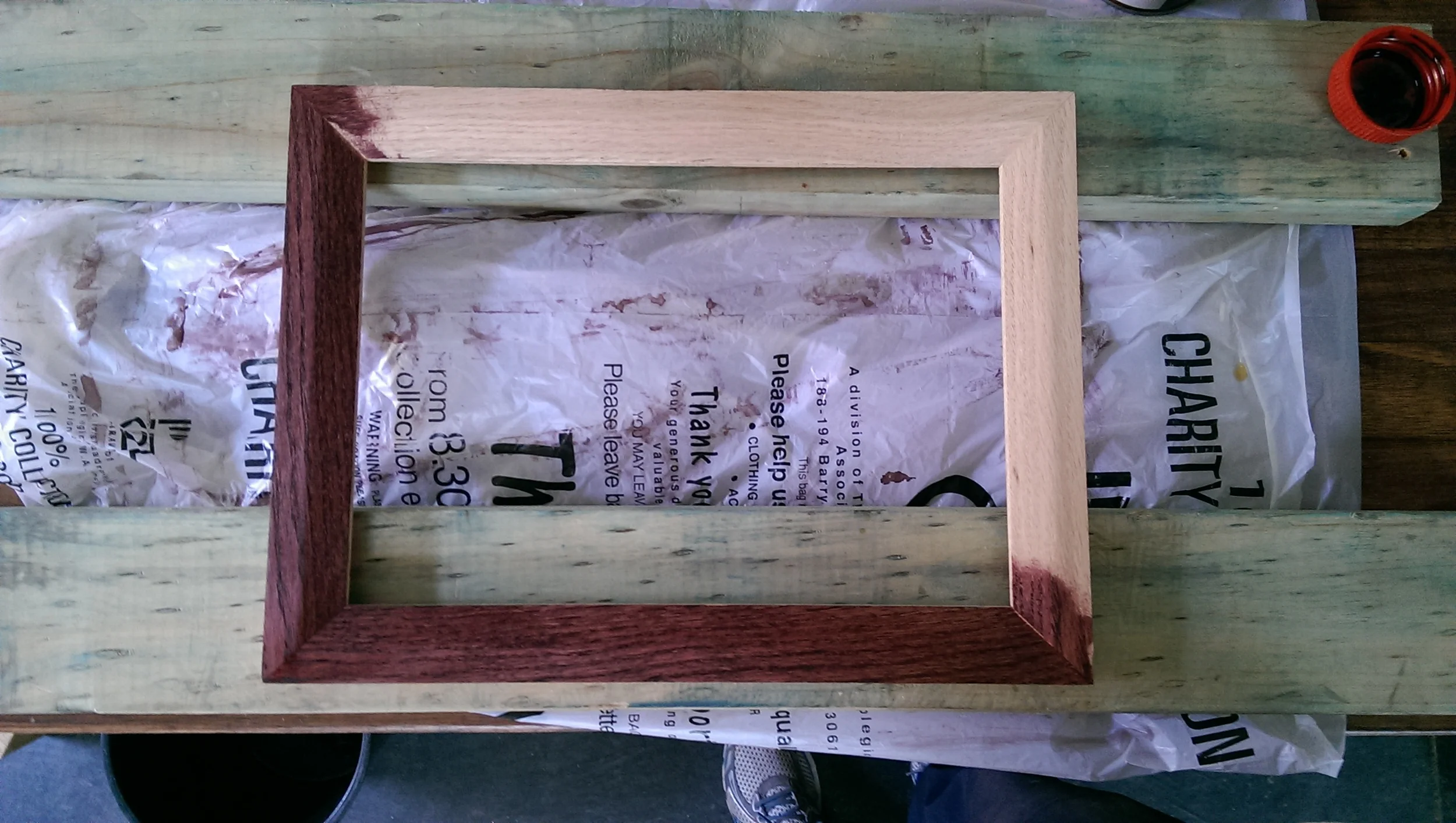 One of my small frames coming to life with some Rosewood stain.