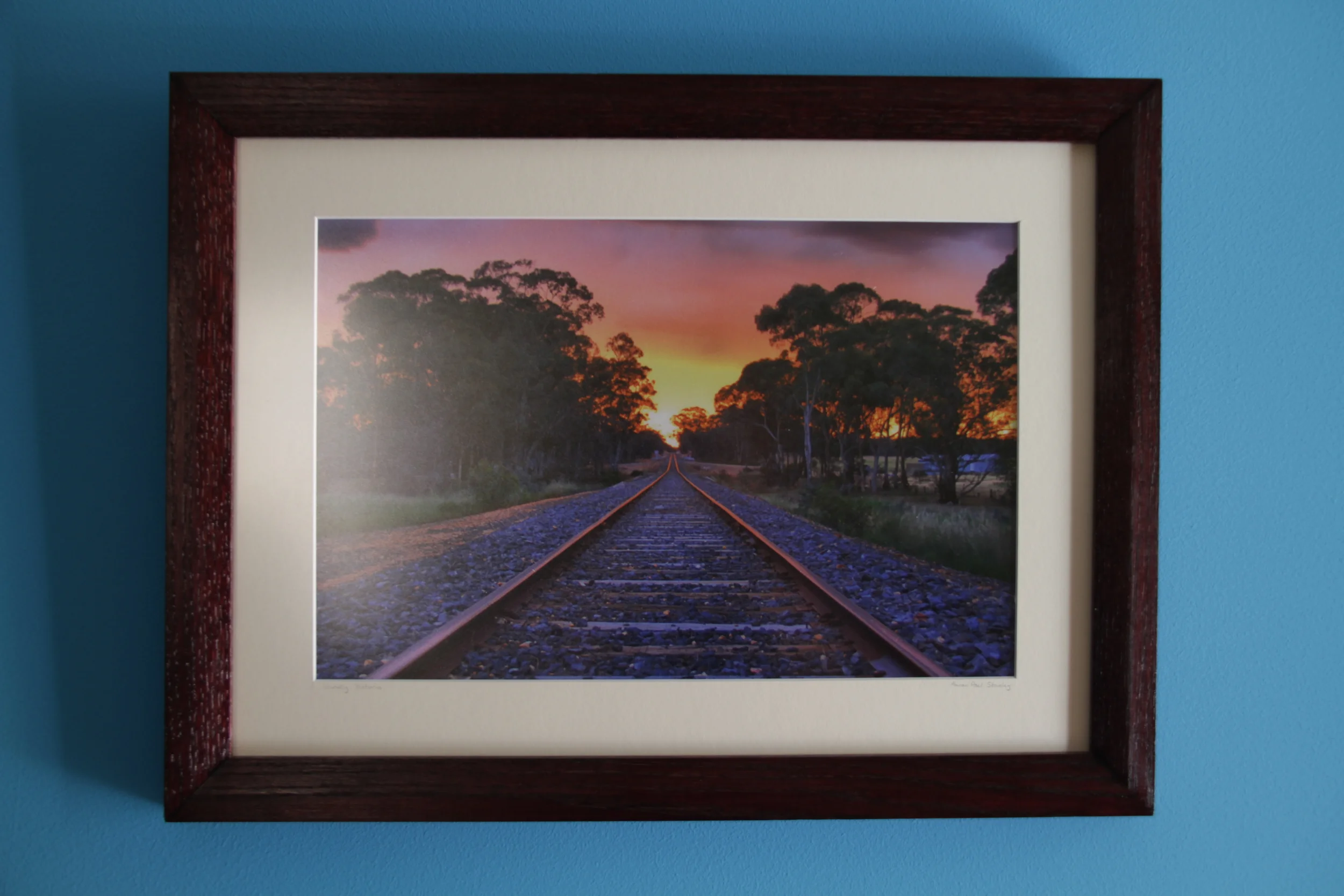 I will start off with a few photos from my frame making process. I spend many hours on each frame that is made, from cutting, gluing, tacking, sanding, staining, clear coat, getting the photos printed and glass cut, cutting the mats, assembling everything together and adding the final touches does take quite a bit of time. After all the blood sweat and tears the final product is worth all the fuss. I do have a fine attention to detail which usually makes the whole process much longer.